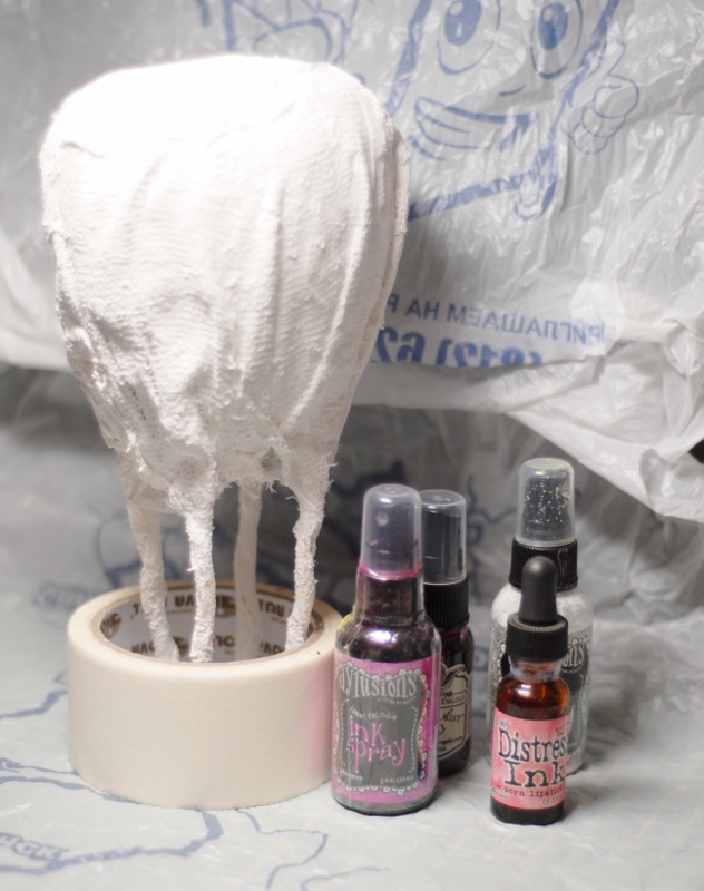 сразу же распределила весь бинт в хаотичном порядке заходя и на ножки шпажки, их просто обработала предварительно так же смазав грунтом .