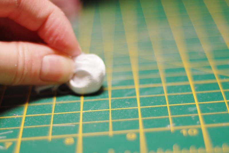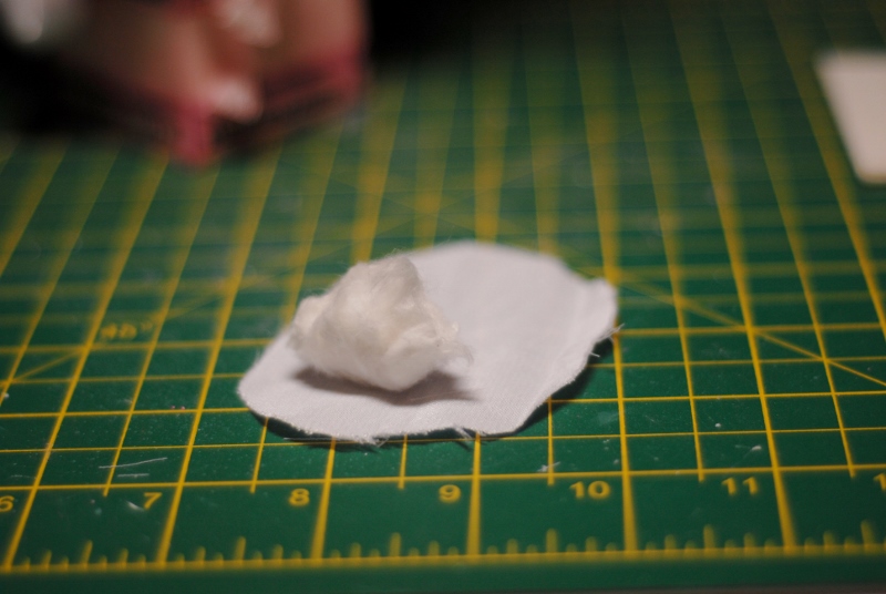 дальше вырезала кругляк с той же ткани что брали для шара, положила во внутрь ватку