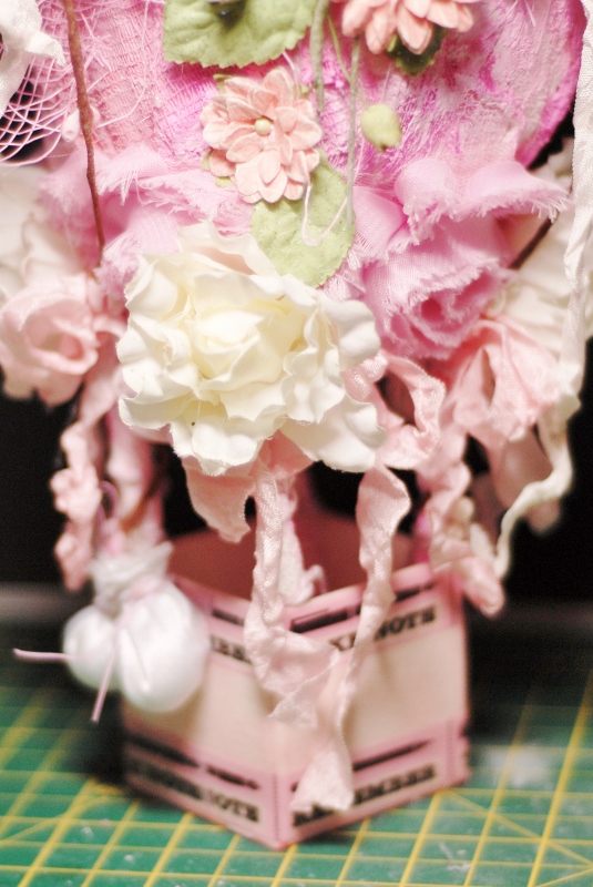 дальше над бантами из шебби лент и на верх в центр шара я приклеила большие розы тканевые придав зефирности и воздушности