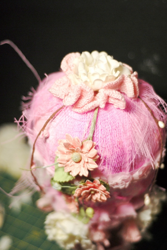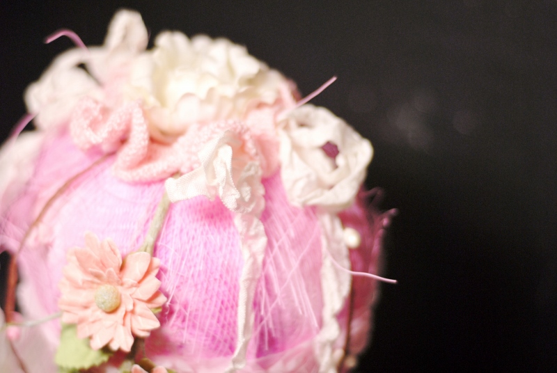 добавила пару веточек с почками и ленту с мелкими цветами вокруг всего шара
