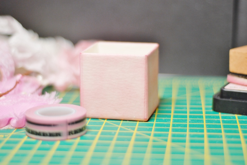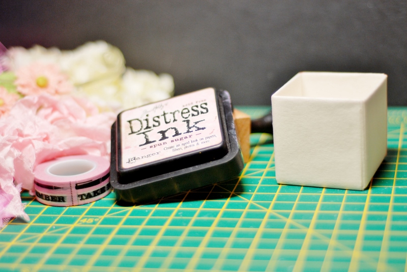 затонировала коробочку розовым дистресс больше уделяя внимания сгибам и углам