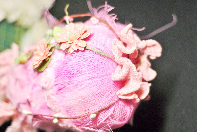 потом нашла в запасах когда то снятую флористическую сетку с цветов ( ими бутоны роз были обвёрнуты в букете) и как раз она у меня в тон оказалась)