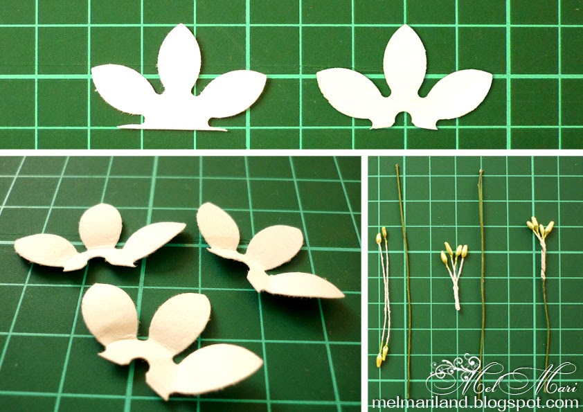 Далее берем 2 тычинки, складываем пополам и приклеиваем к проволоке.