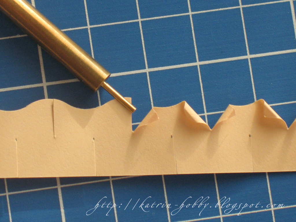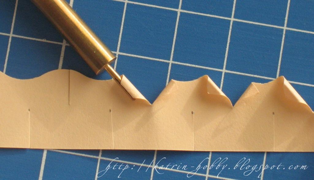 Берем инструмент для закручивания ролов (можно шилом). И с волнистой стороны подкручиваем будущие лепестки розы.