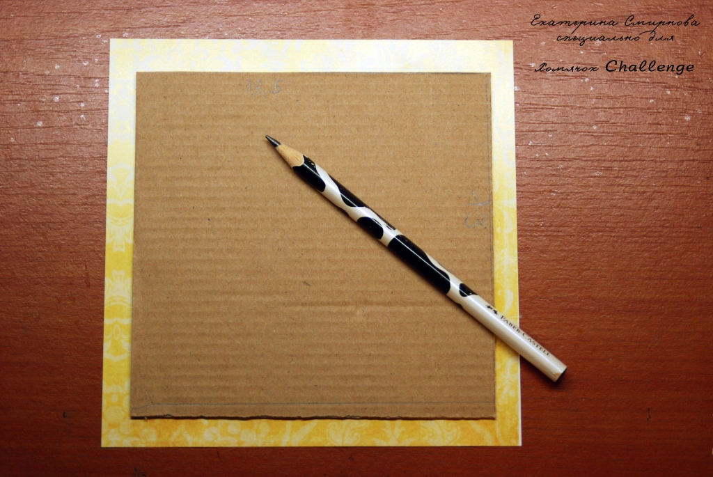 1. Кладем картонку на середину квадрата размером 15,5х15 см и карандашом отмечаем углы картонки.