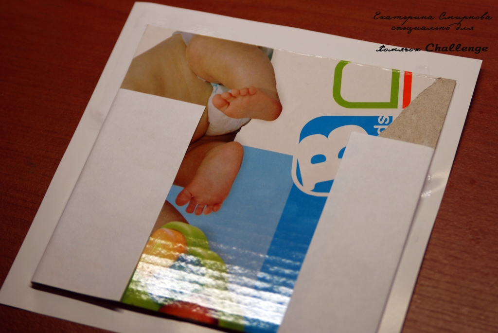 5. На картонку приклеиваем прямоугольник №2. Делаем это как показано на фотографиях ниже: