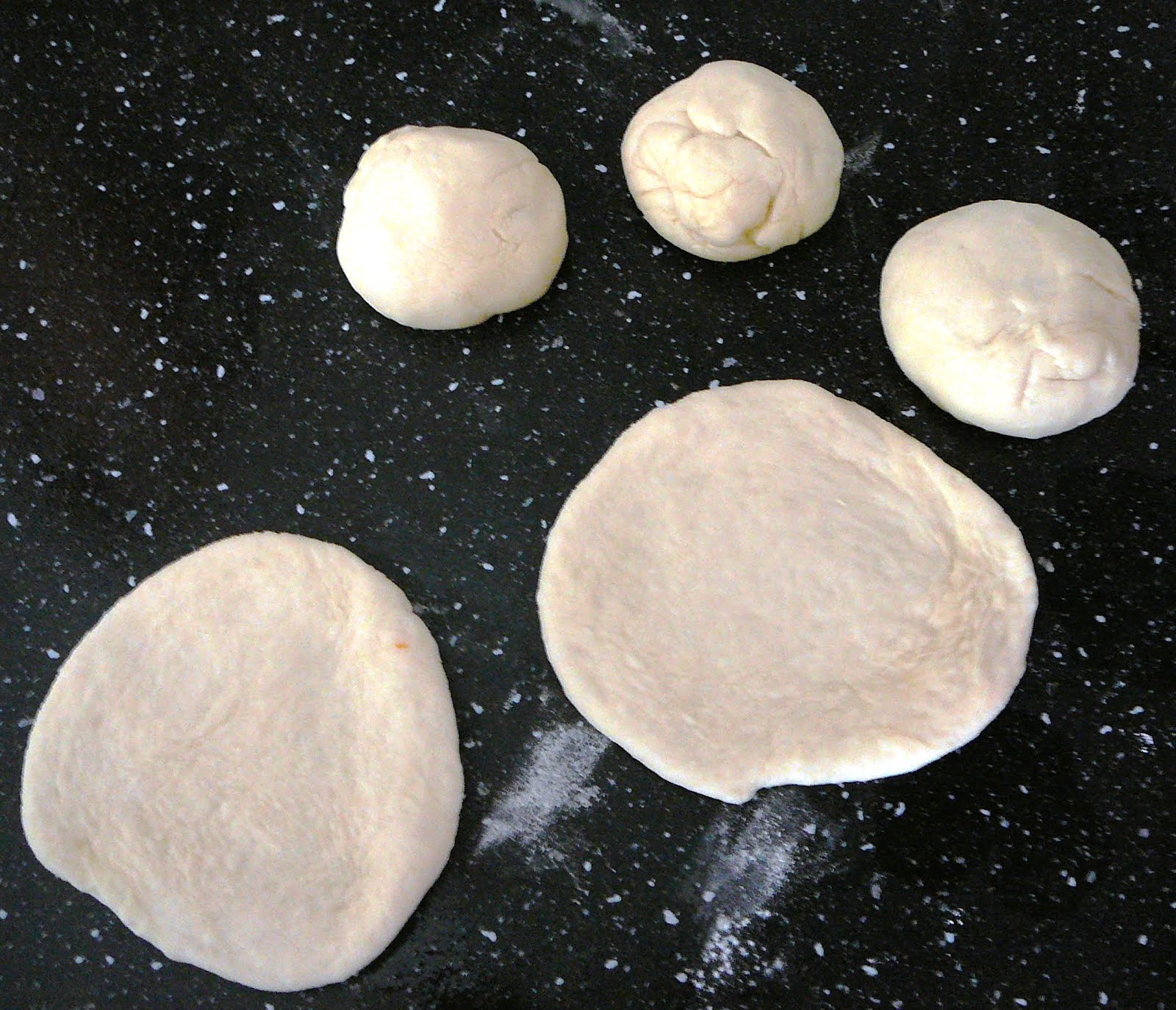 Разделить тесто на небольшие шарики, раскатать их в лепешки.