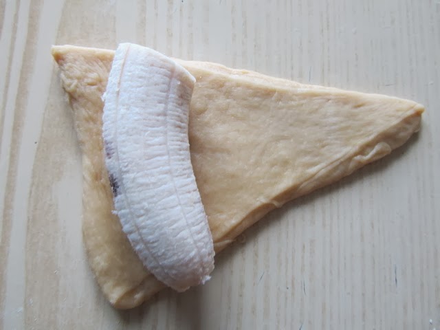 На последнюю булочку начинки не хватило, положила в начинку кусок банана. При соединении хвостиков банан упирался, но я оказалась сильнее!!! )))