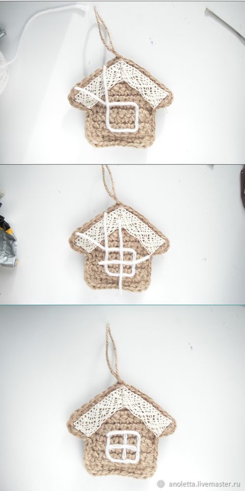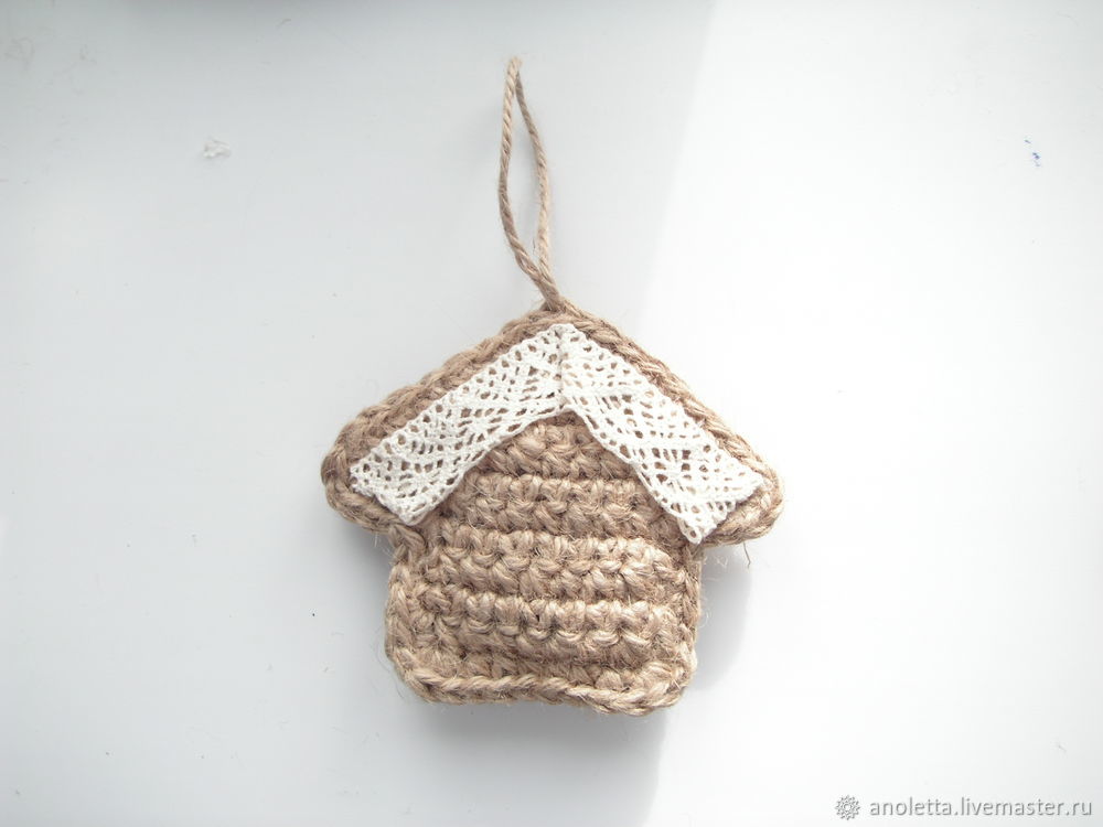 Ёлочная игрушка крючком из джута «Домик» за один час (МК)