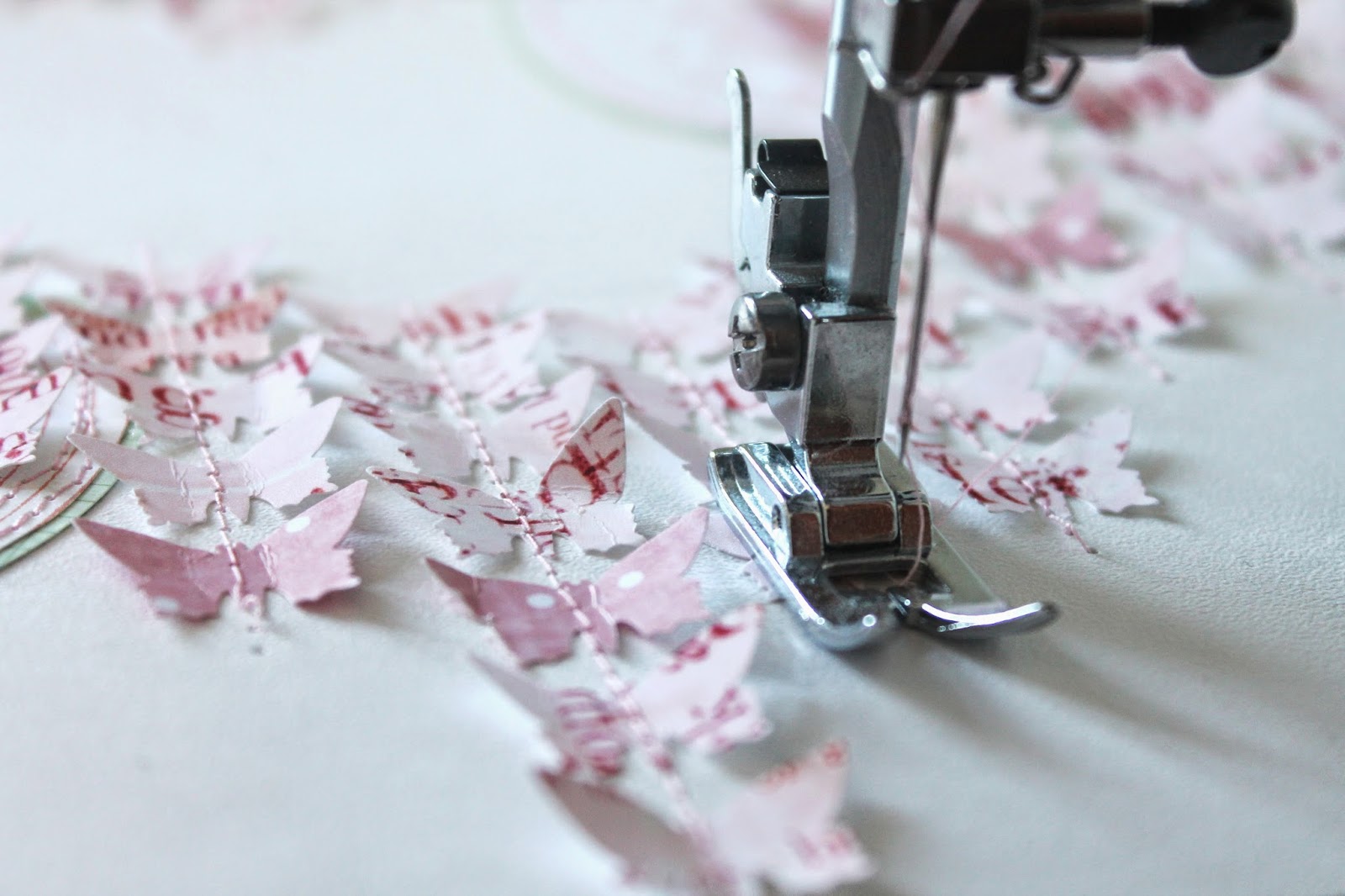 Прострачиваем каждую линию из бабочек. Приподнимаем крылышки.