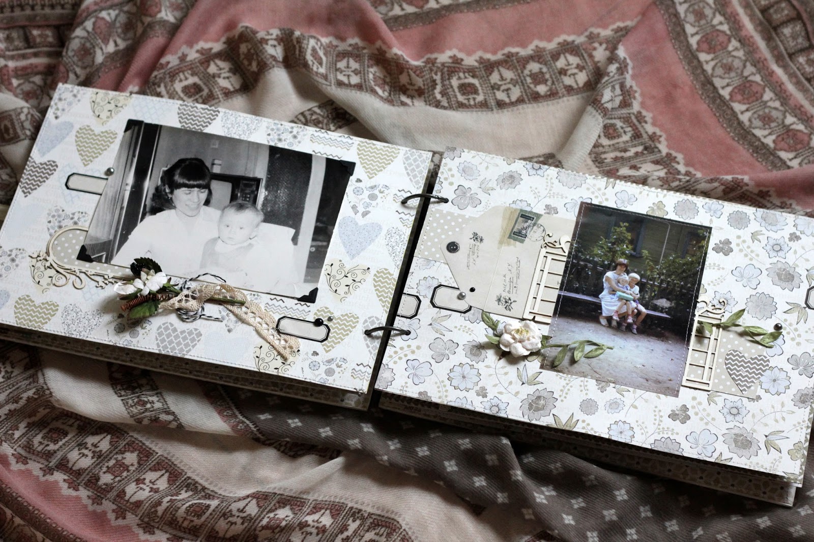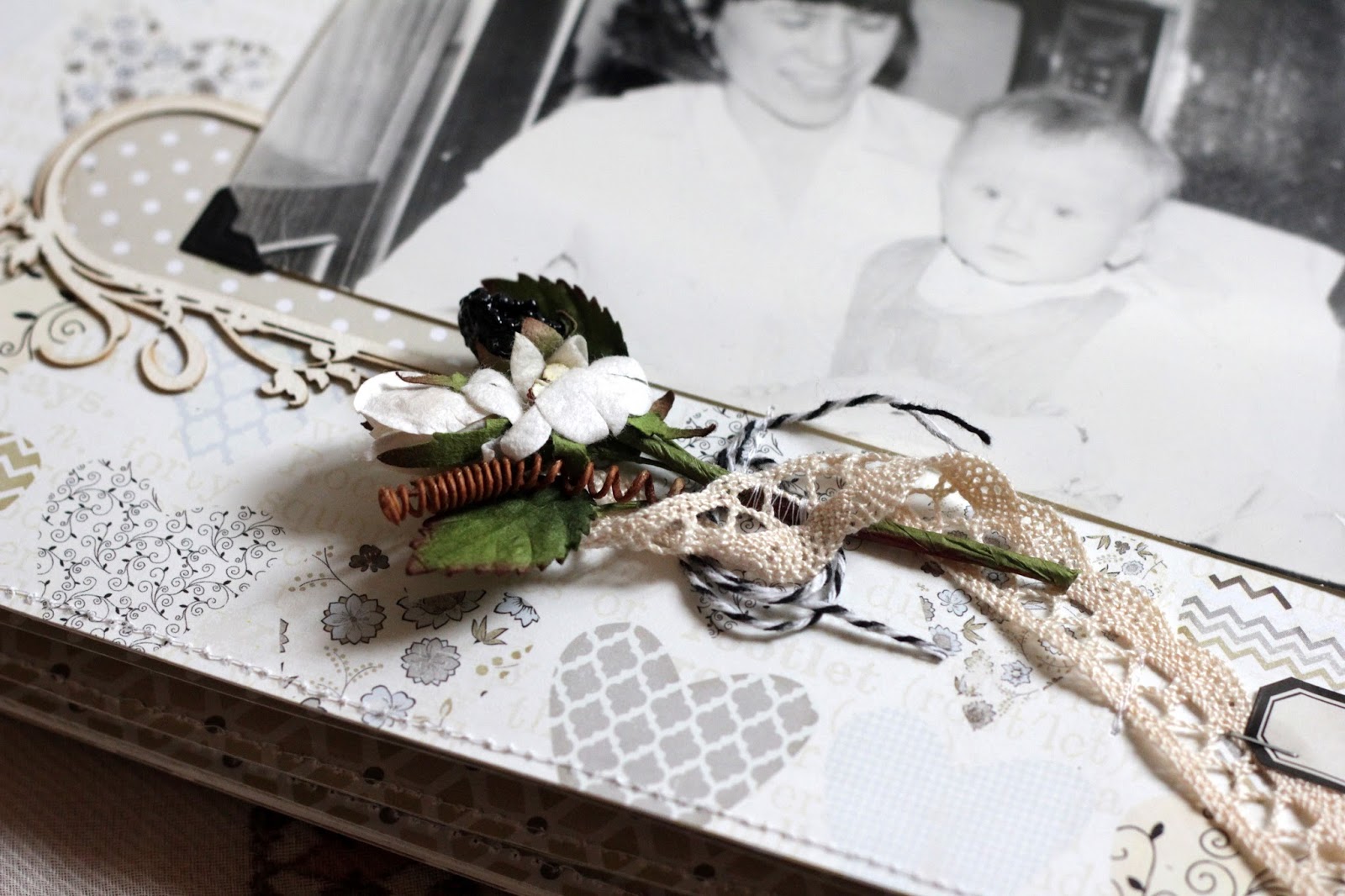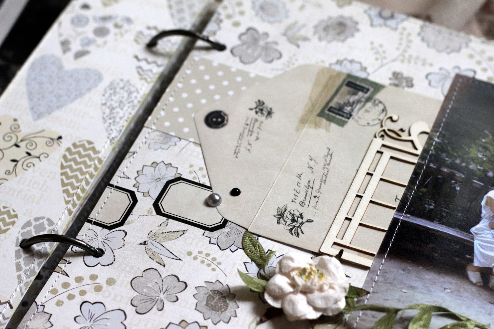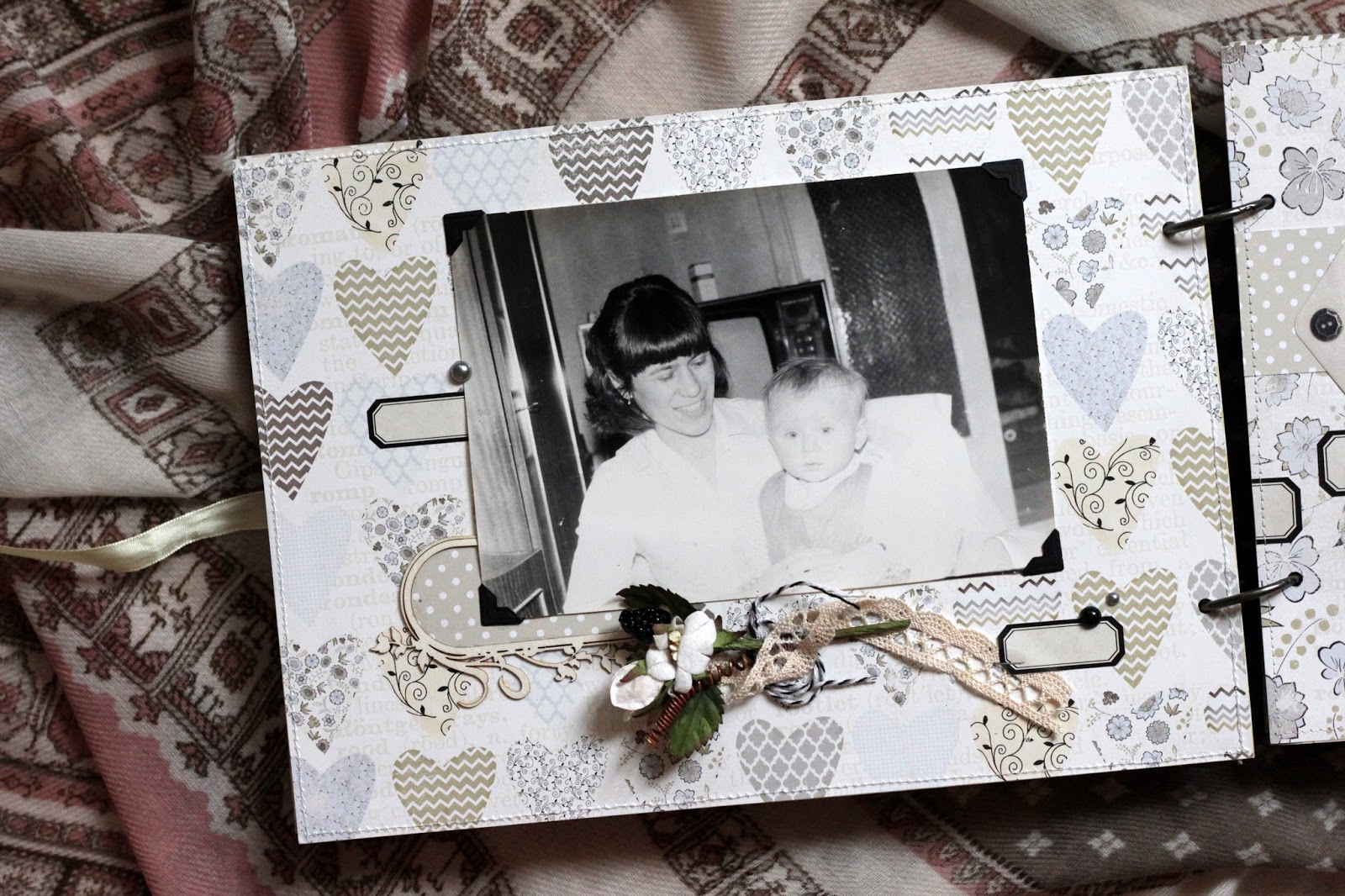Альбом, от которого я сама в тихом восторге :) До чего же в нем красивые, пропитанные временем фотографии. Черно-белые картинки оживали на страничках и очень гармонировали с подобранной нами (вместе с заказчицей) бумагой.