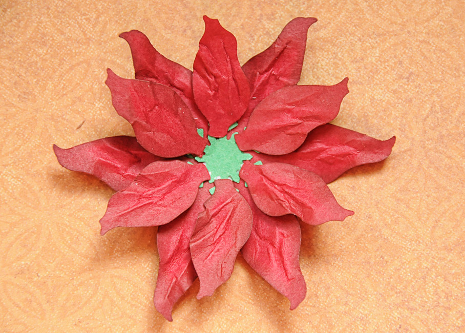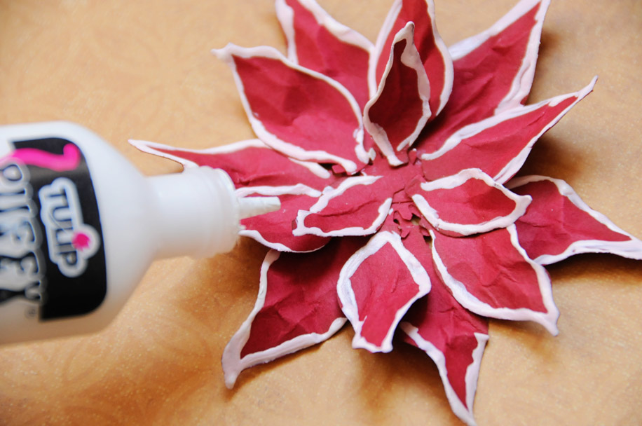 You can stop at the last step, or you can give your poinsettia a snowy look by edging the petals with puffy paint. Let sit until dry.