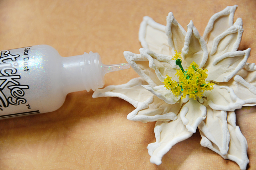 I will also show you a white poinsettia variation. Edge with puffy paint and set aside to dry.