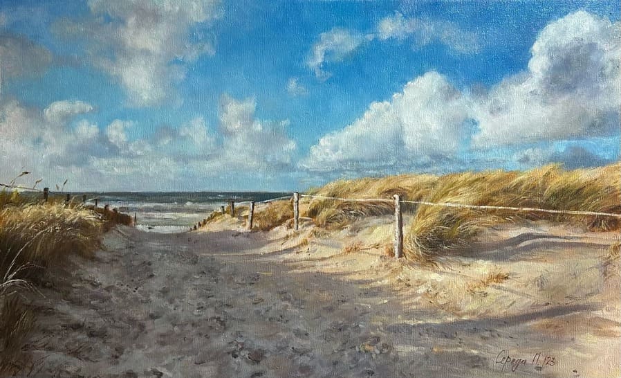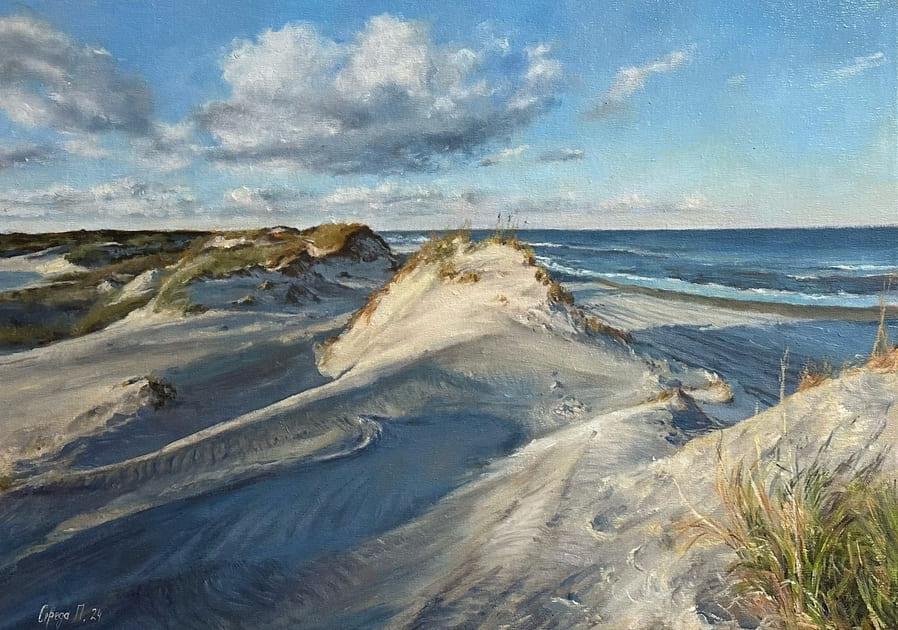 Особое место в моем творчестве занимают морские сюжеты. Меня вдохновляют пейзажи песчаных дюн и бушующее море. Хотела бы показать вам подборку работ, которые перенесут вас на морской берег. Ветер обдувает, песок танцует, слышен шелест травы и на лицо попадают капли морской воды.