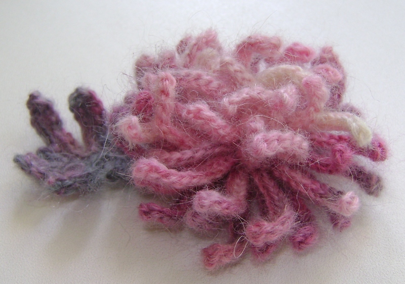 Но футбол продолжается и ангора еше не закончилась! Из пасмочки, что справа, получилась вот такая розовая хризантема, и еще вяжется белая...