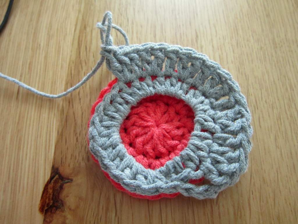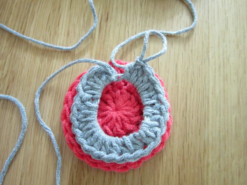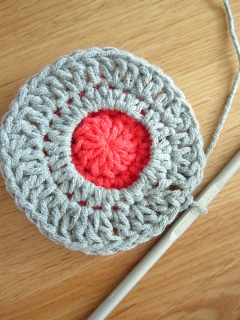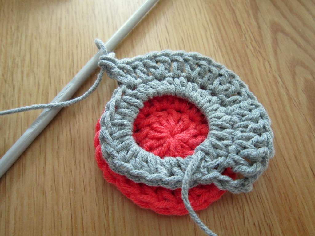 Next row - we will join the inner and outer circles on this row by working into both at the same time.