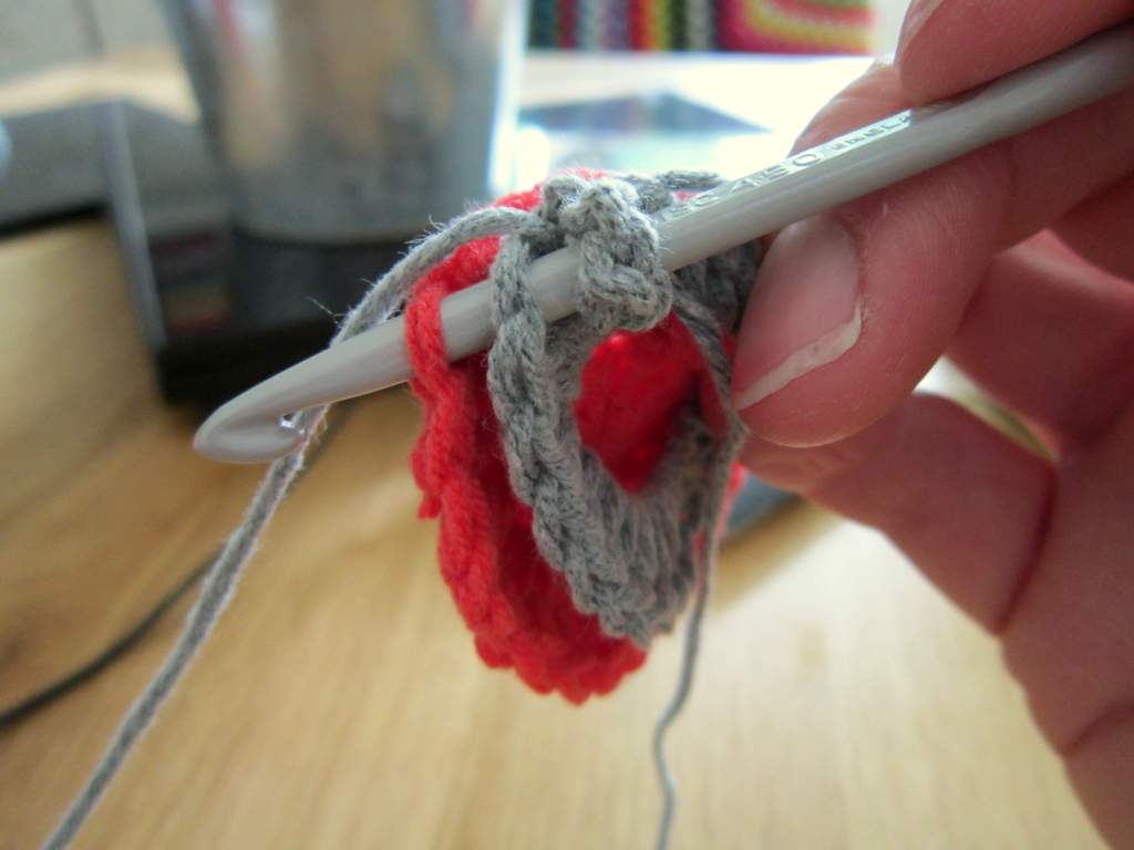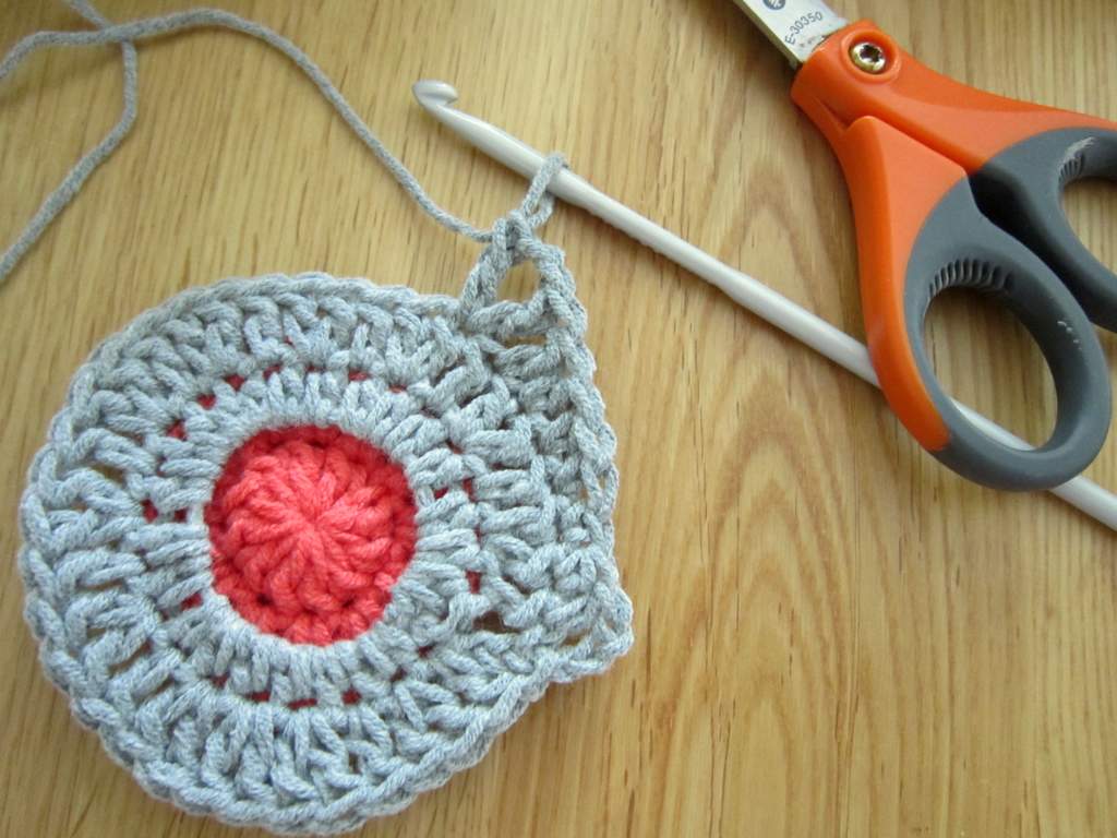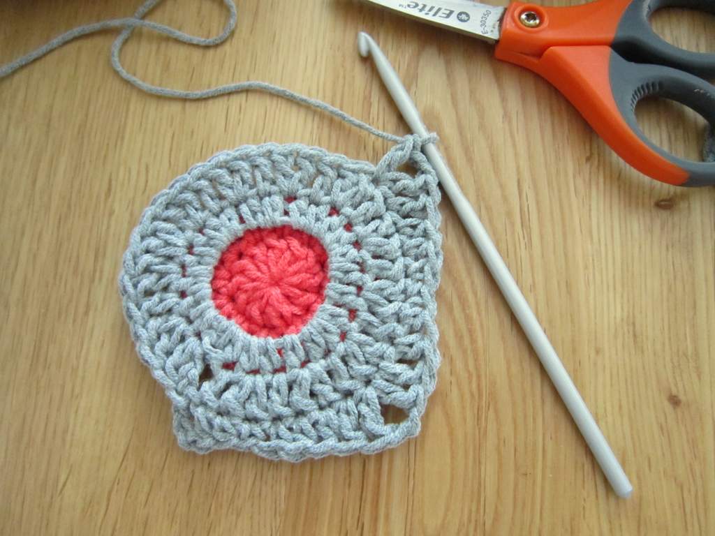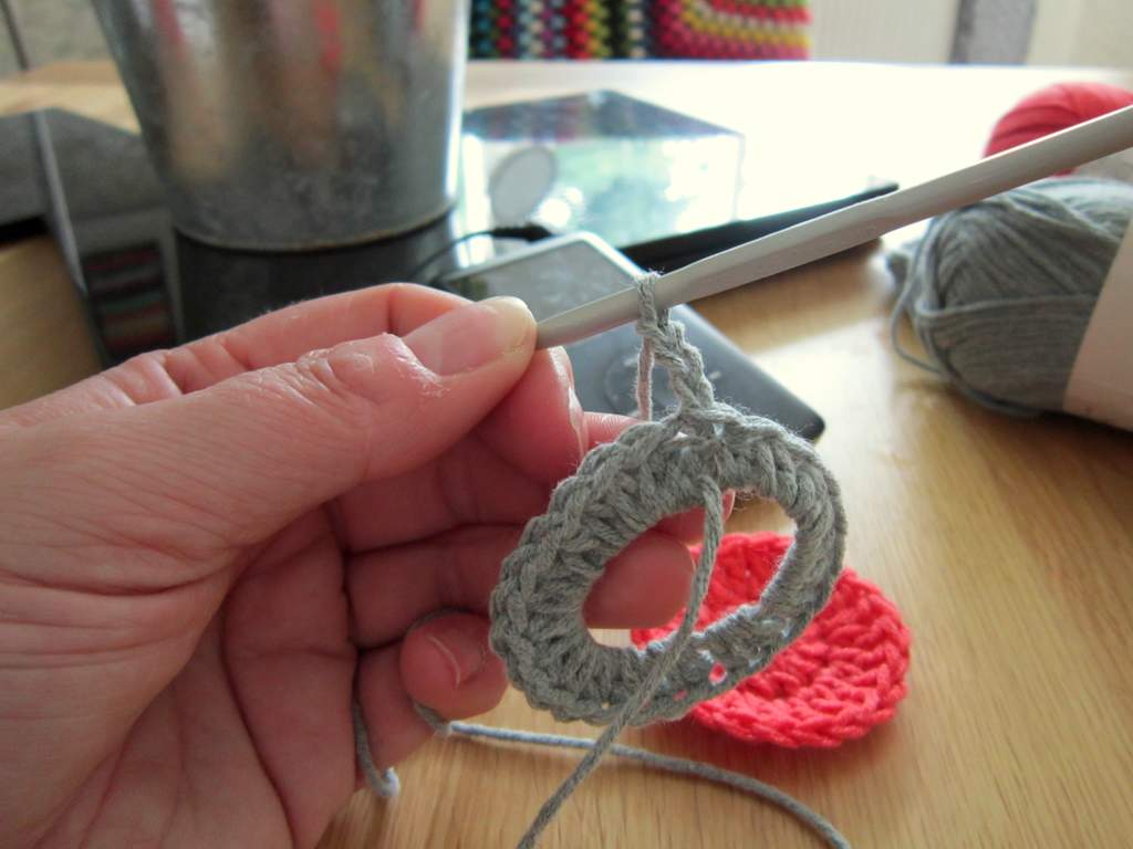 Next row - we will join the inner and outer circles on this row by working into both at the same time.