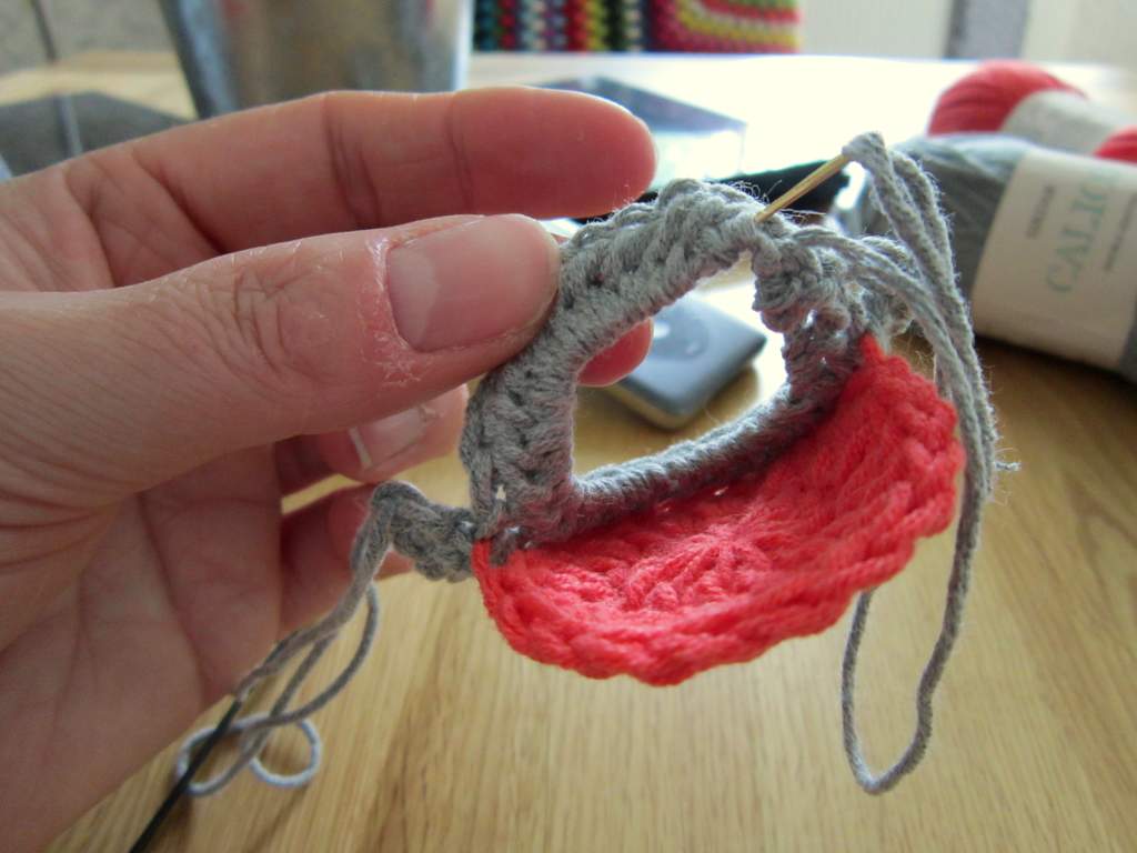 Fasten off the magic loop end at this point securely by stitching back and forth behind the hdc stitches.