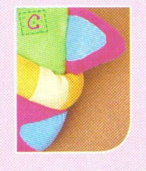 Прострочите детали шапочки. пришейте кисточку. Приметайте к шапочке кружево, подогнув его на 0,5 см. Наденьте ее на месяц и пришейте потайным швом. Пришейте глаза-пуговицы и веки. Стачайте пары ручек. вывернете и слегка набейте. Открытые края подверните внутрь на 0,5 см и пришейте ручки с основной детали игрушки. Сшейте из белого материала маленькую подушечку и пришейте потайным швом к одной из ручек.