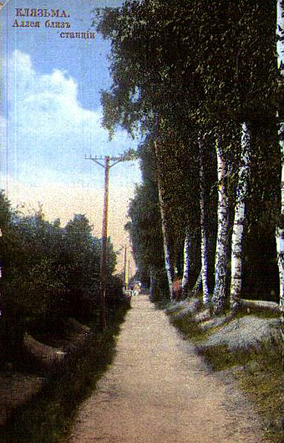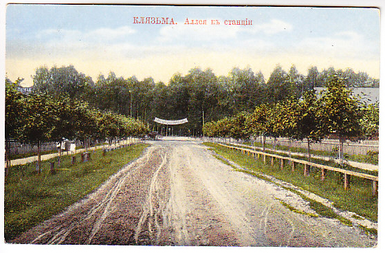 Клязьма. Аллея к станции. Изд. С.П. Муравьёва, Пушкино, 1912 г.