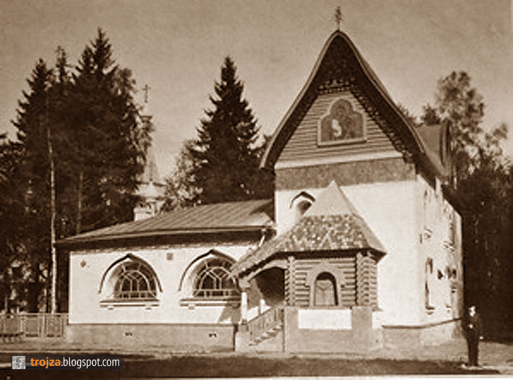 Упомянутая П. Канчаловским "церковь дачников" - это, в те времена ещё деревянная, церковь Иконы Божией Матери Боголюбская, выстроенная в 1874 году.