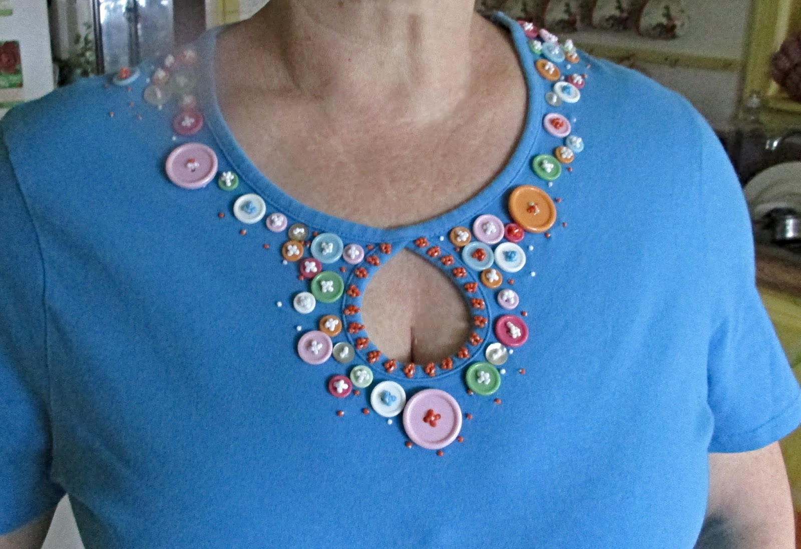 Вот какой орнамент на трикотажной кофочке,получился из лишних пуговиц:
