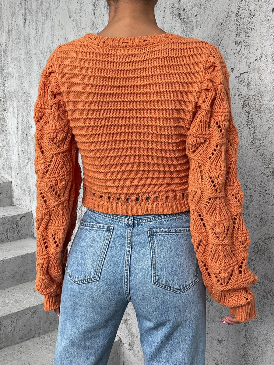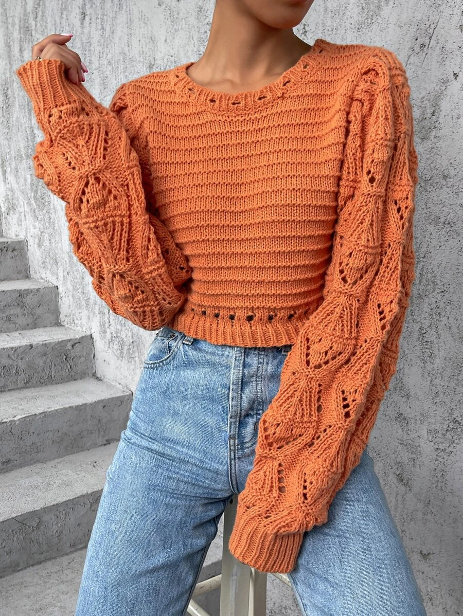 Третий свитер связан из пряжи приятного теплого оранжевого цвета.