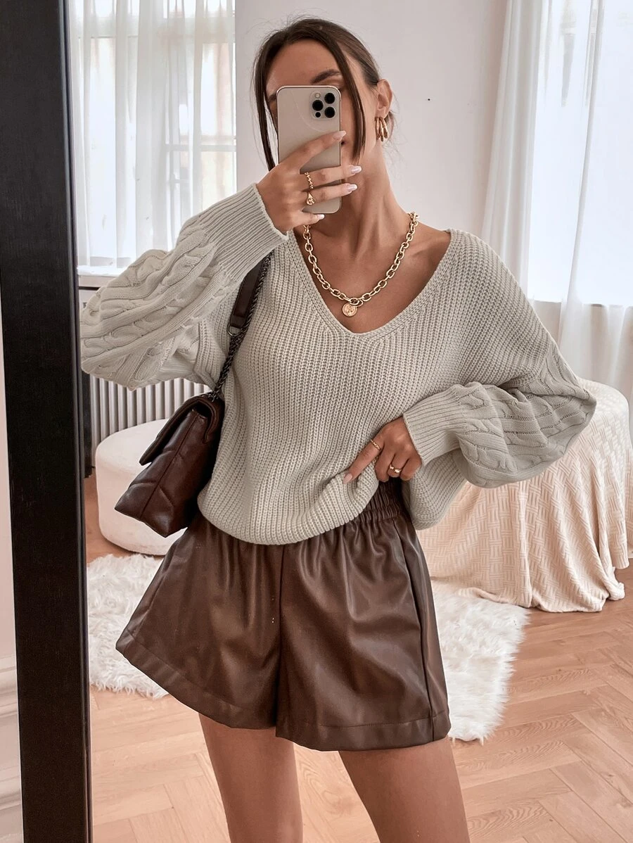 В этой статье будет подборка вязаных свитеров первого направления - с узорчатыми рукавами. Думаю, по девушке-модели уже понятно, что все эти свитера - из известного каталога Shein.