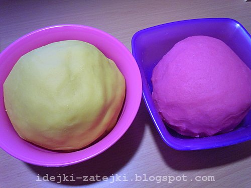 Готовое тесто должно быть мягким, однородным и не липнуть к рукам. Консистенция должна быть в точности как у теста Плей-До (Play-Doh). Скажу на собственном опыте - мне тесто домашнего приготовления показалось даже более нежным и мягким!