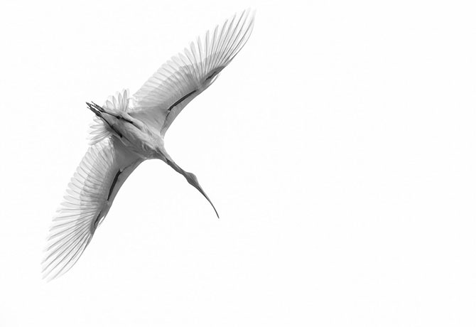 20. Черноголовый ибис, пролетающий над птичьим заповедником (штат Карнатака, Индия).