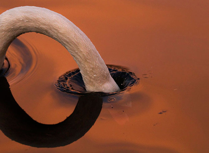 14. Лебедь, погрузивший голову в воду.