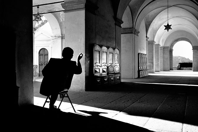 27. Охранник выкуривает сигарету в конце рабочего дня (вилла Медичи Поджо-а-Кайано, Италия).