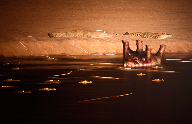 10. Труп бегемота и другой живности, плывущие по реке в Замбии.