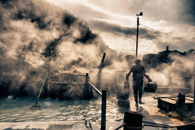 13. Япония, долина Овакудани (в переводе на русский означает "великий ад"). Вся долина покрыта кипящими источниками, извергающими пар и горячие потоки. Воздух насыщен серным запахом.