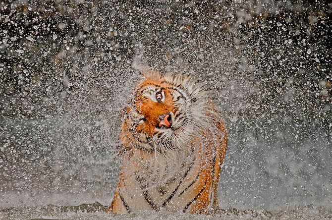 31. Тигрица во время купания в зоопарке (Таиланд).