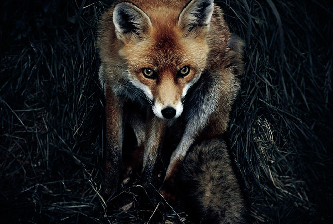 40. Взгляд рыжей лисицы в сумерках (Шепрет, Великобритания).