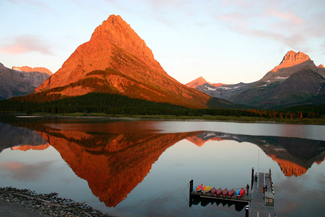 25. Вид на горы Национального парка Глейшер (Канада) на рассвете.