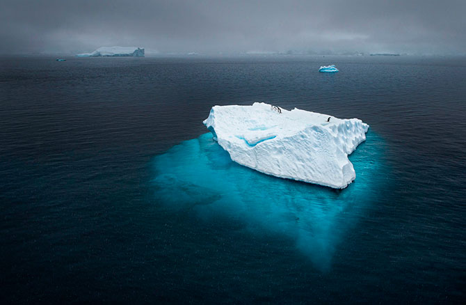 11. Несколько пингвинов на айсберге. Антарктида.