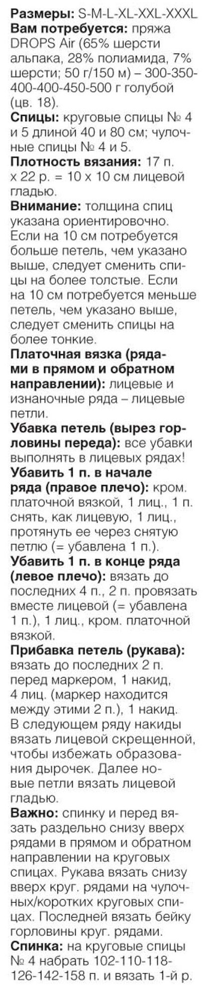 снизу вверх. Размеры: S-M-L-XL-XXL-XXXL Пряжа: DROPS Air