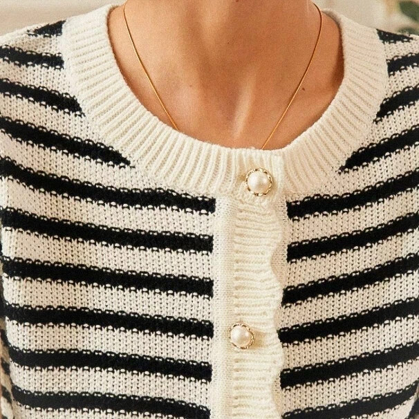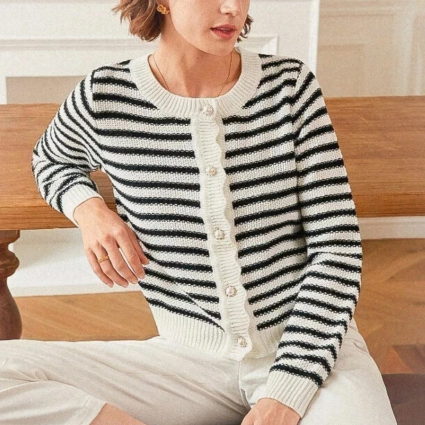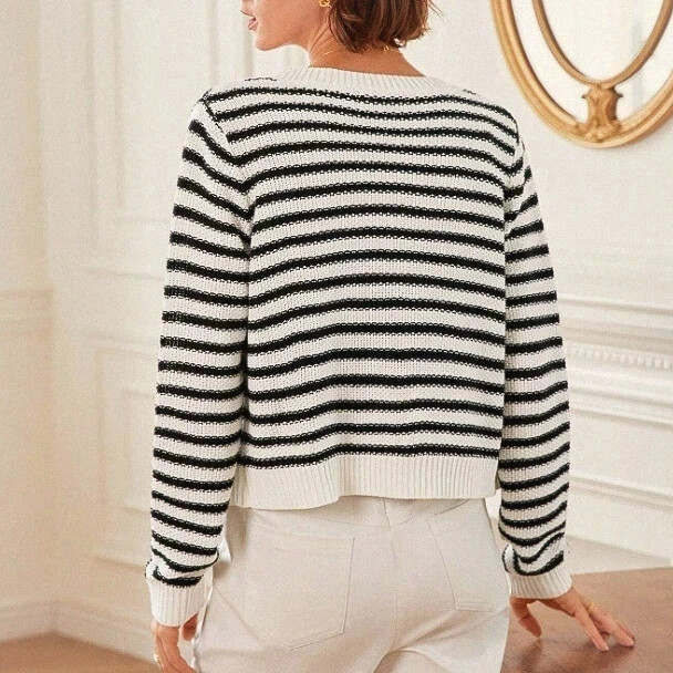 Модель классического фасона с втачными рукавами суженными к манжете. Основное полотно вяжется жемчужным узором