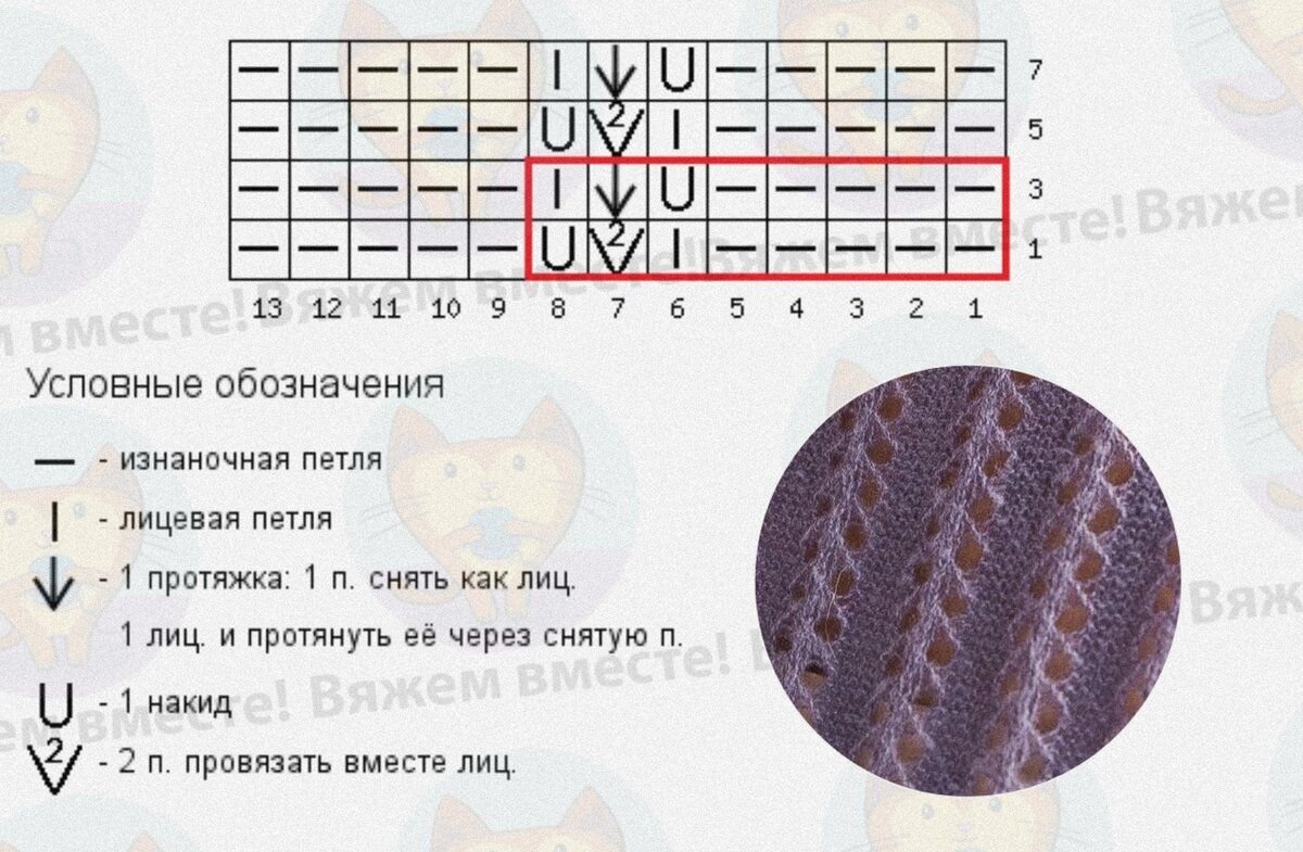 Джемпер сиреневого цвета ,украшен вертикальными ажурными дорожками на фоне изнаночной глади, такой узор используется по переду и, вероятно, по спинке изделия, а на рукавах пышная резинка.