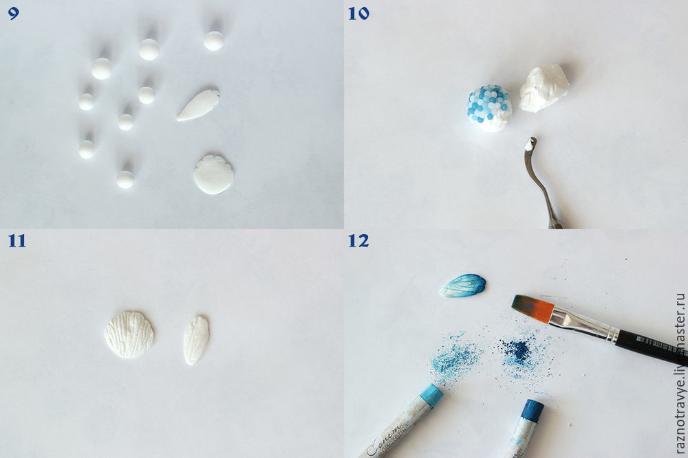 - полимерная глина голубого, синего, белого цветов, полупрозрачная белая глина, жидкая пластика;