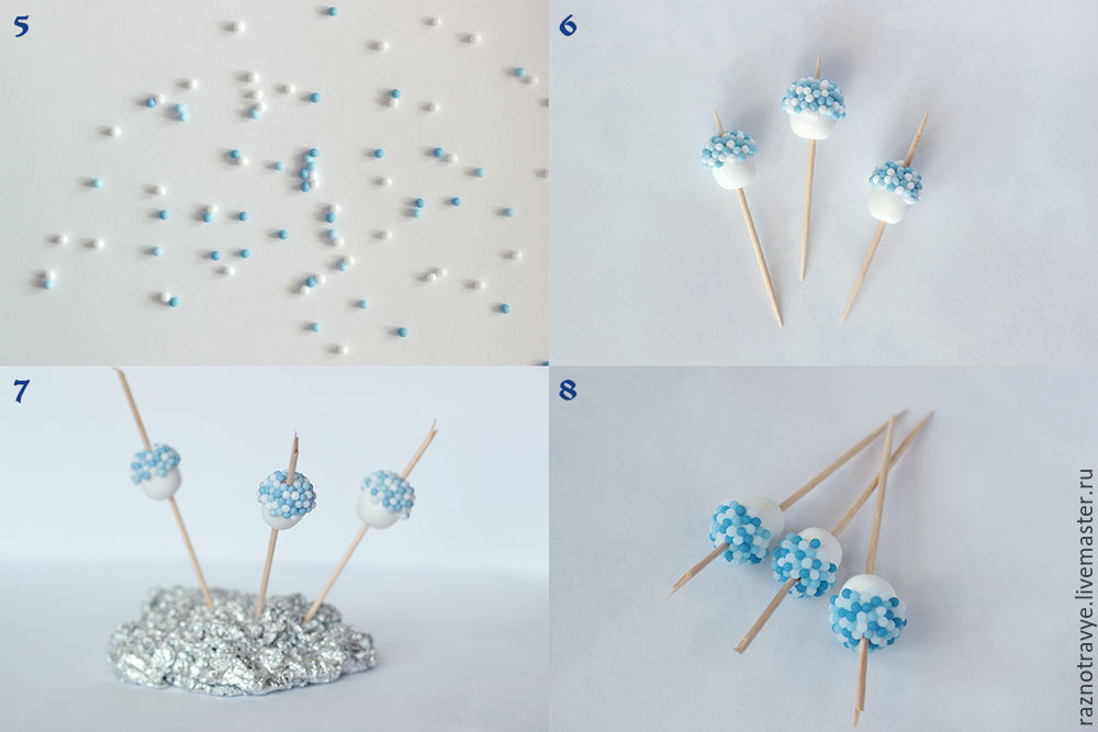 20. Облепливаем основы с прозрачными шариками. Делаем два одинаковых бутона.