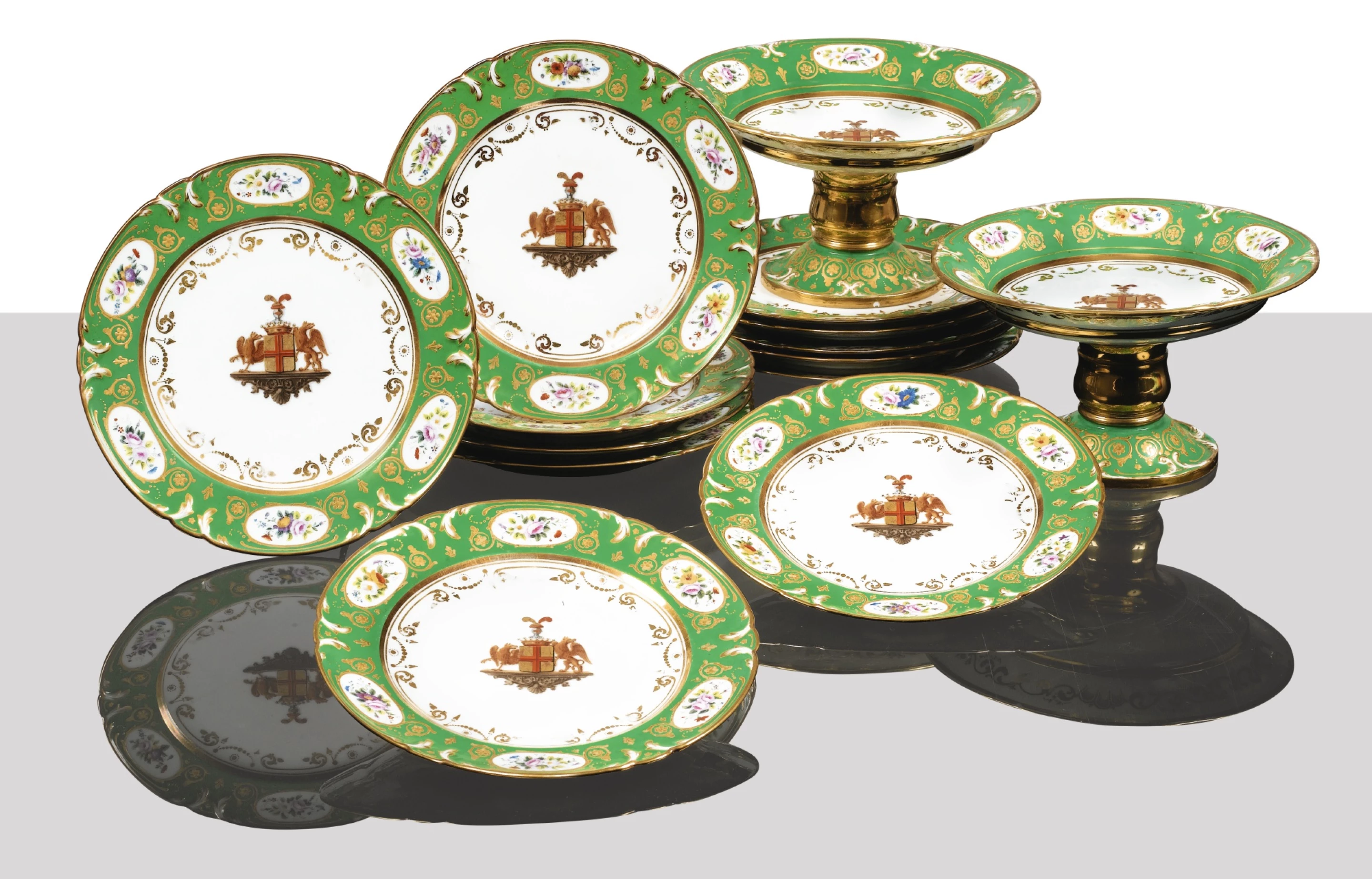 A JACOB PETIT PORCELAIN GREEN-GROUND MONOGRAMMED PART SERVICE