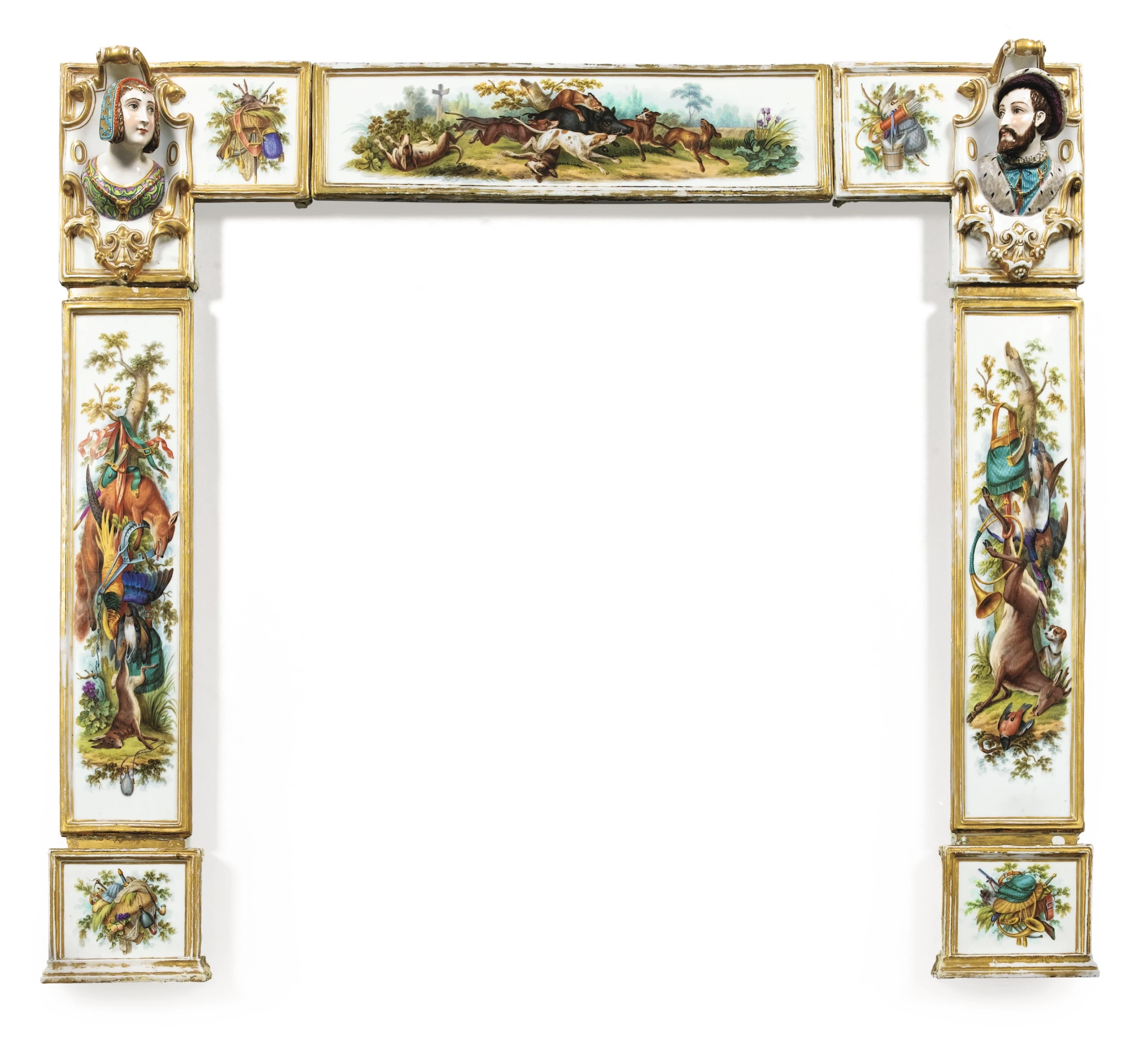 A WHITE, POLYCHROME AND PARCEL-GILT PORCELAIN CHIMNEY PIECE, LOUIS-PHILIPPE, CIRCA 1835-1840, BY JACOB PETIT