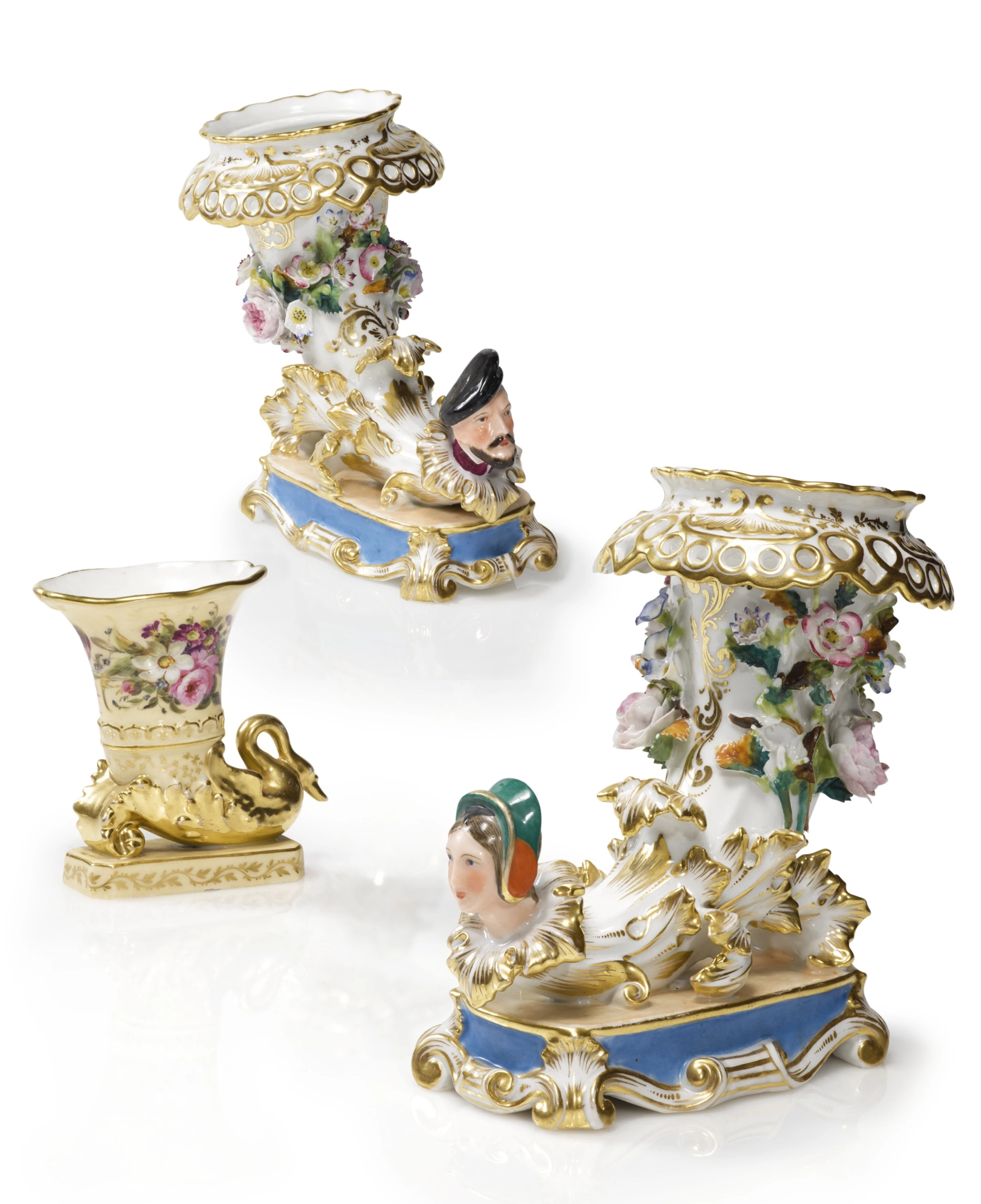 Пара фарфоровых настенных ваз "Cornucopias", Jacob Petit, Франция, 19 век