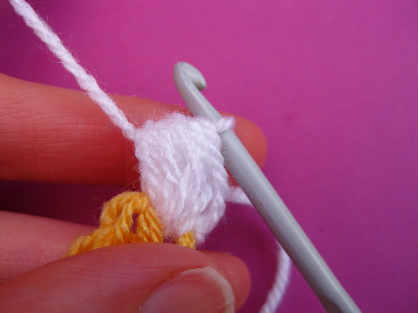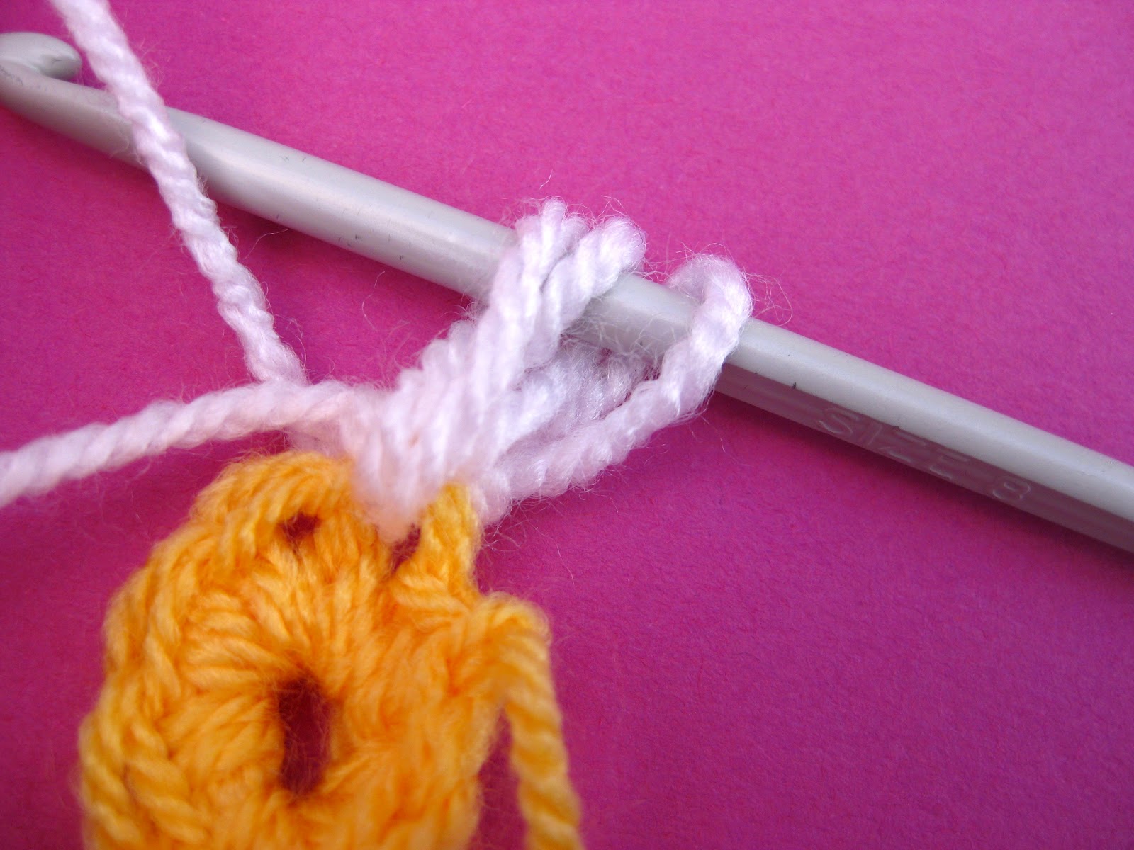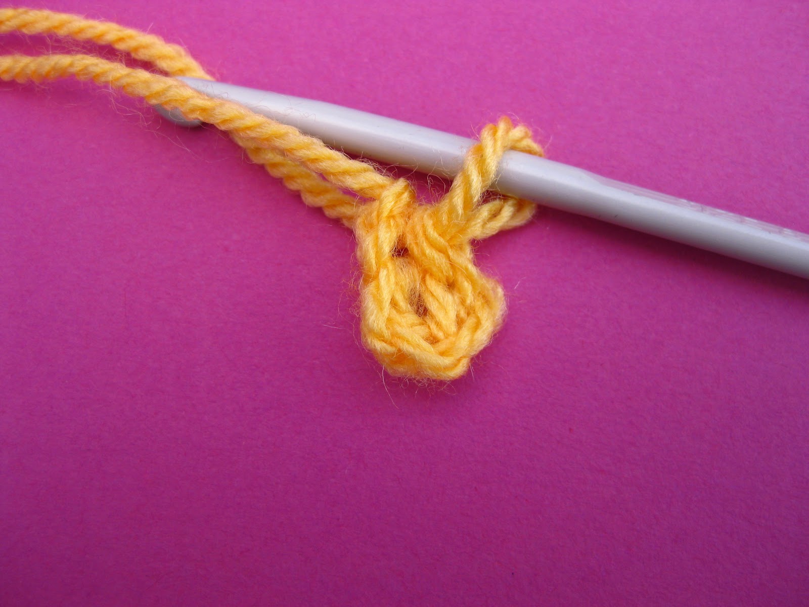 с помощью желтой пряжи.......... начать с цепочки 4 и скольжения строчки в первой ch, чтобы вступить в форме кольца...........
