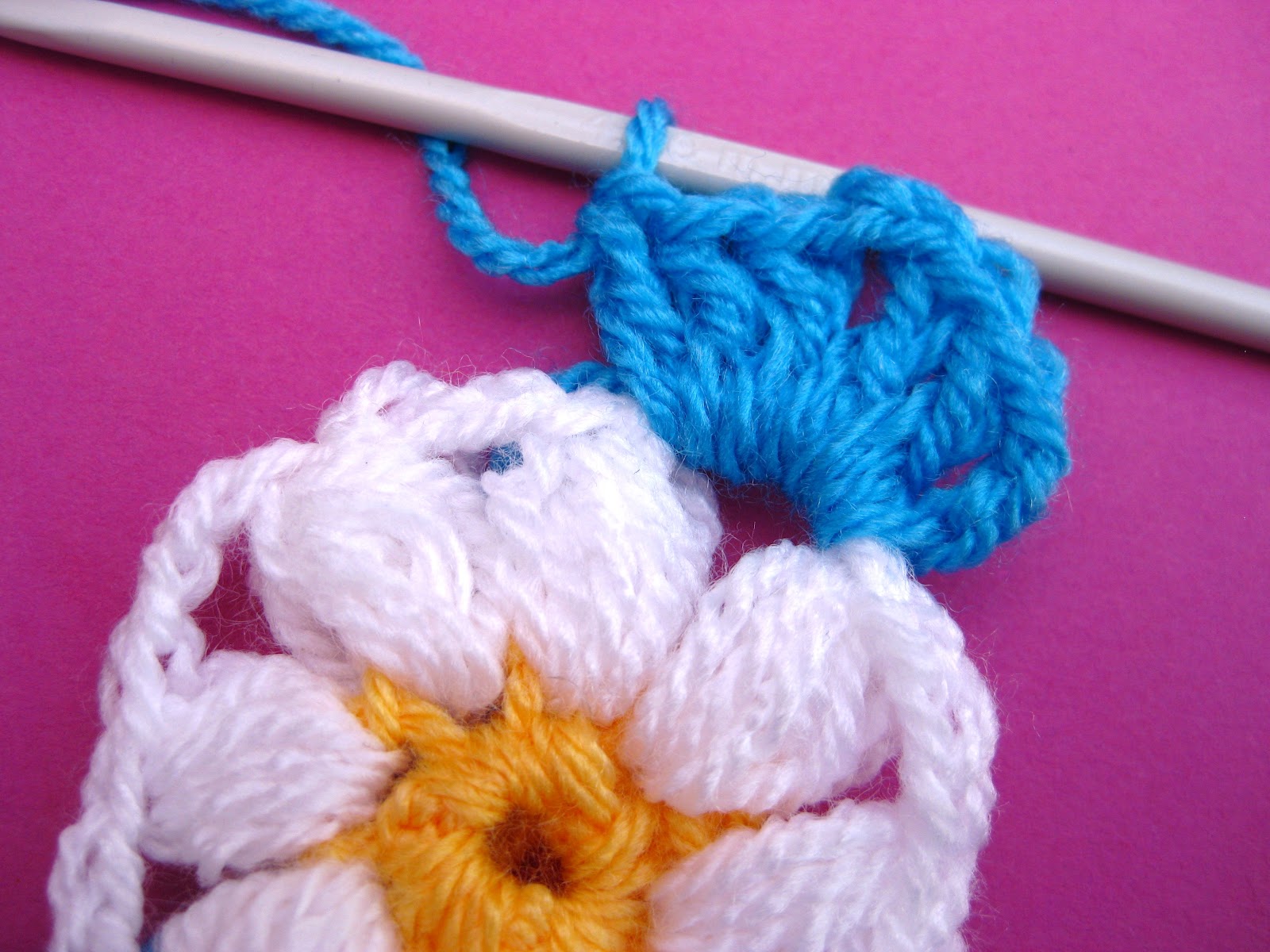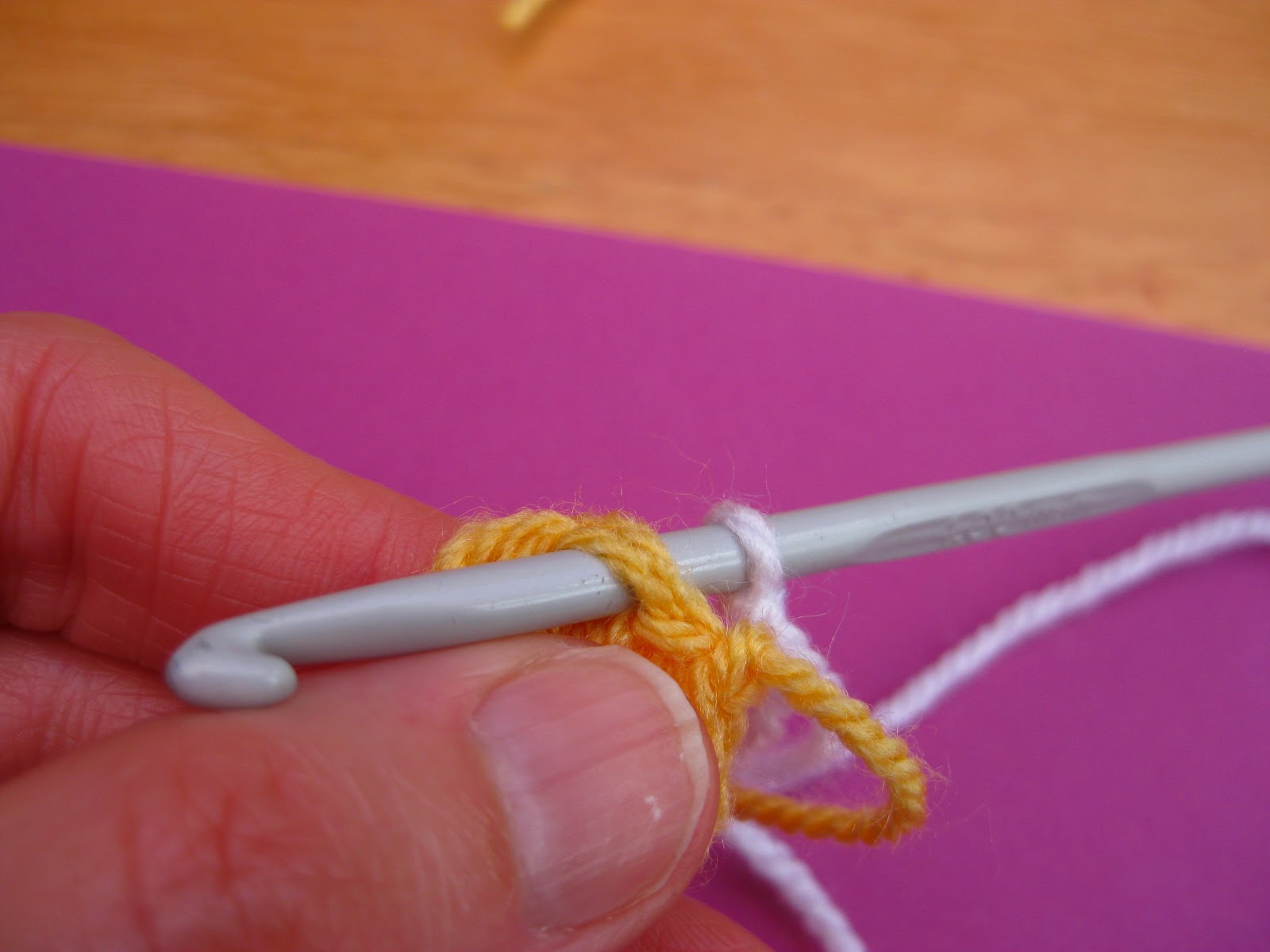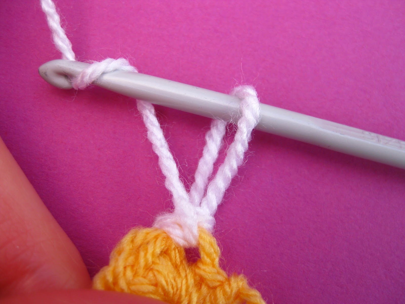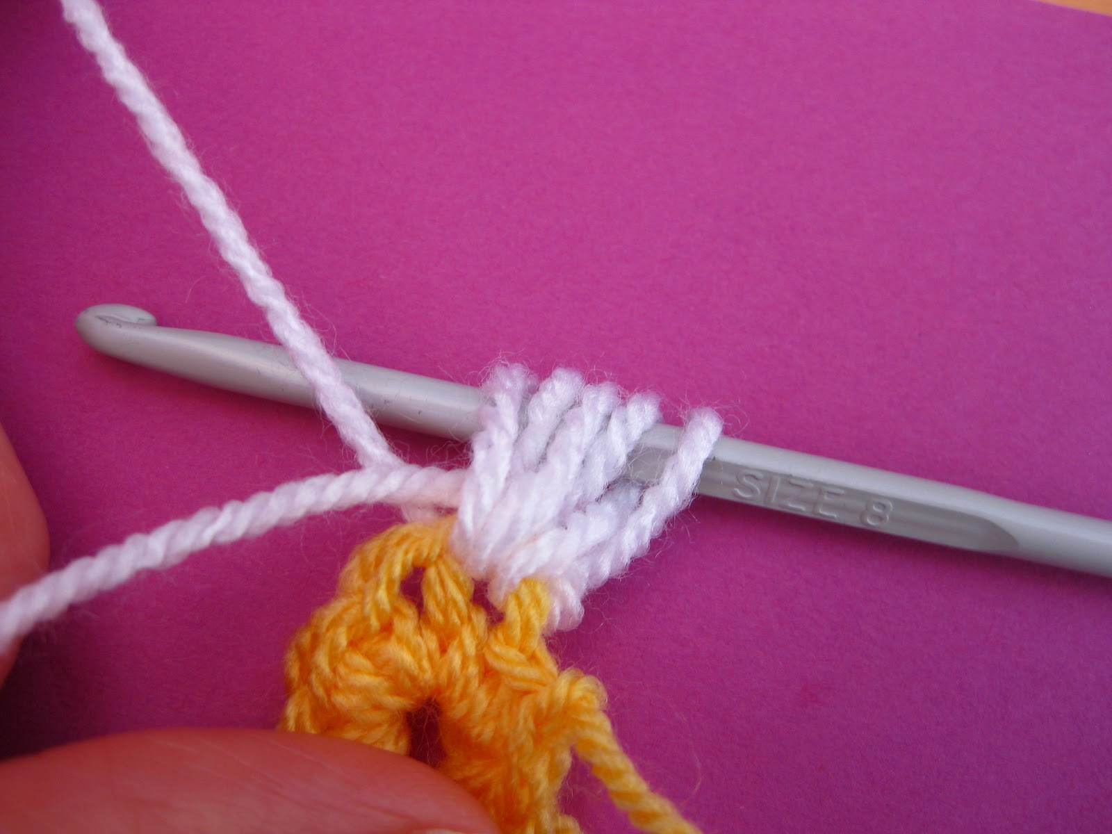 с помощью желтой пряжи.......... начать с цепочки 4 и скольжения строчки в первой ch, чтобы вступить в форме кольца...........