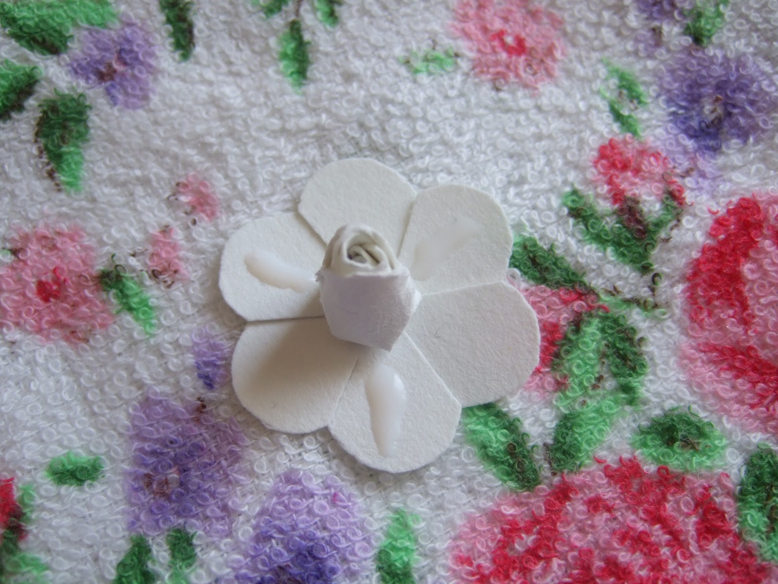 Вставляем бутон в серединку и приклеиваем три лепестка
