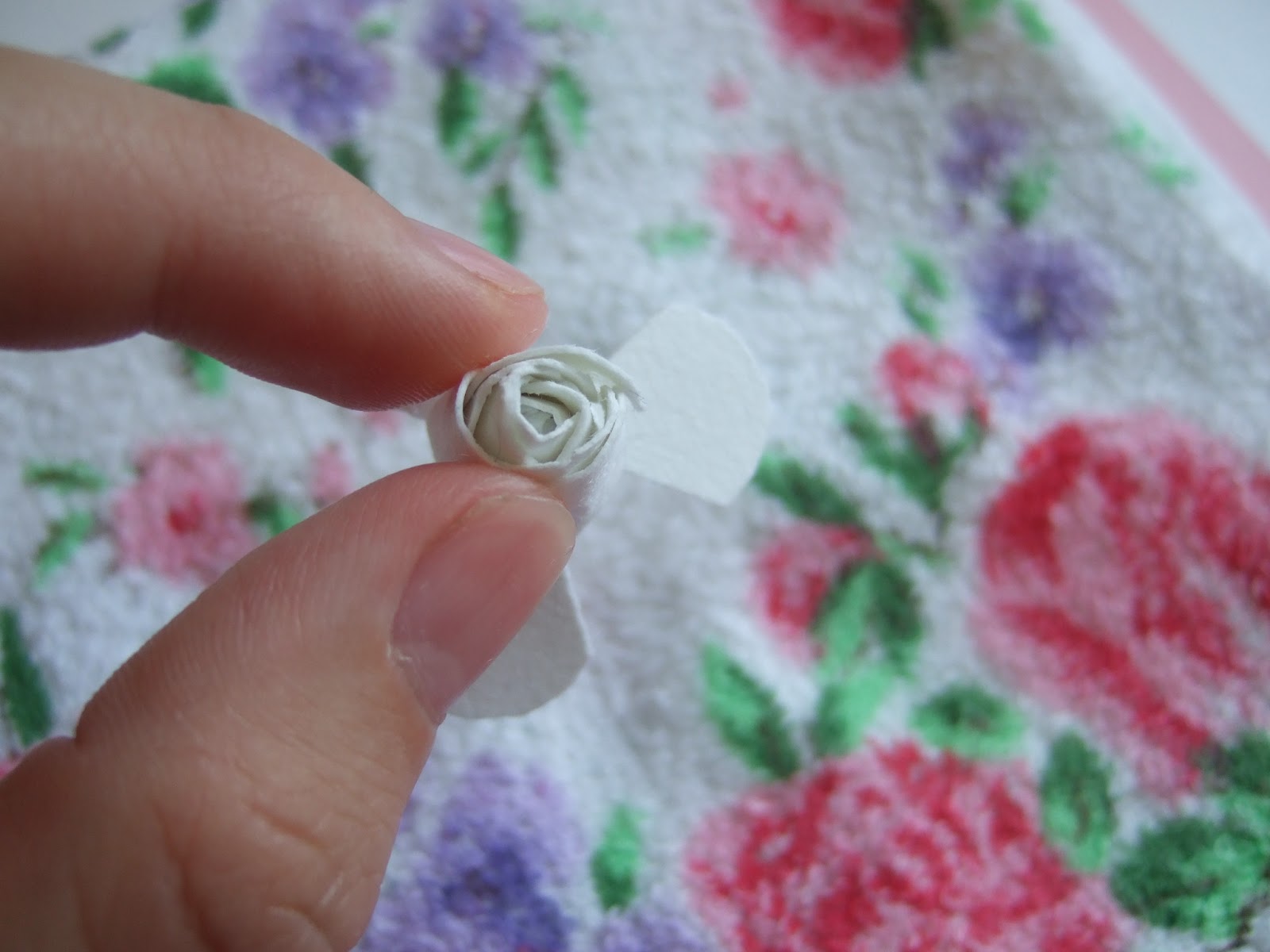 Можно оставить розу белой или использовать цветную бумагу. Но я обычно крашу акриловыми красками